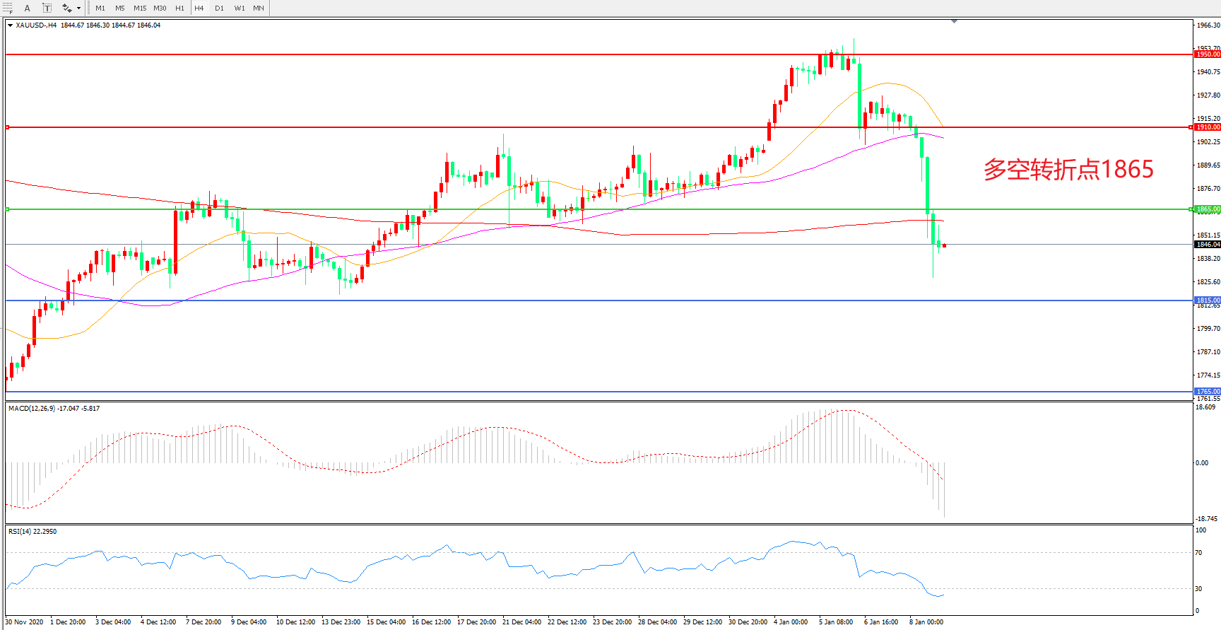 交易策略:在1865.00之下看跌,目标1815.00 1765.00