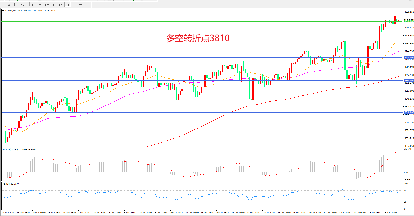 多空转折点:3810.00