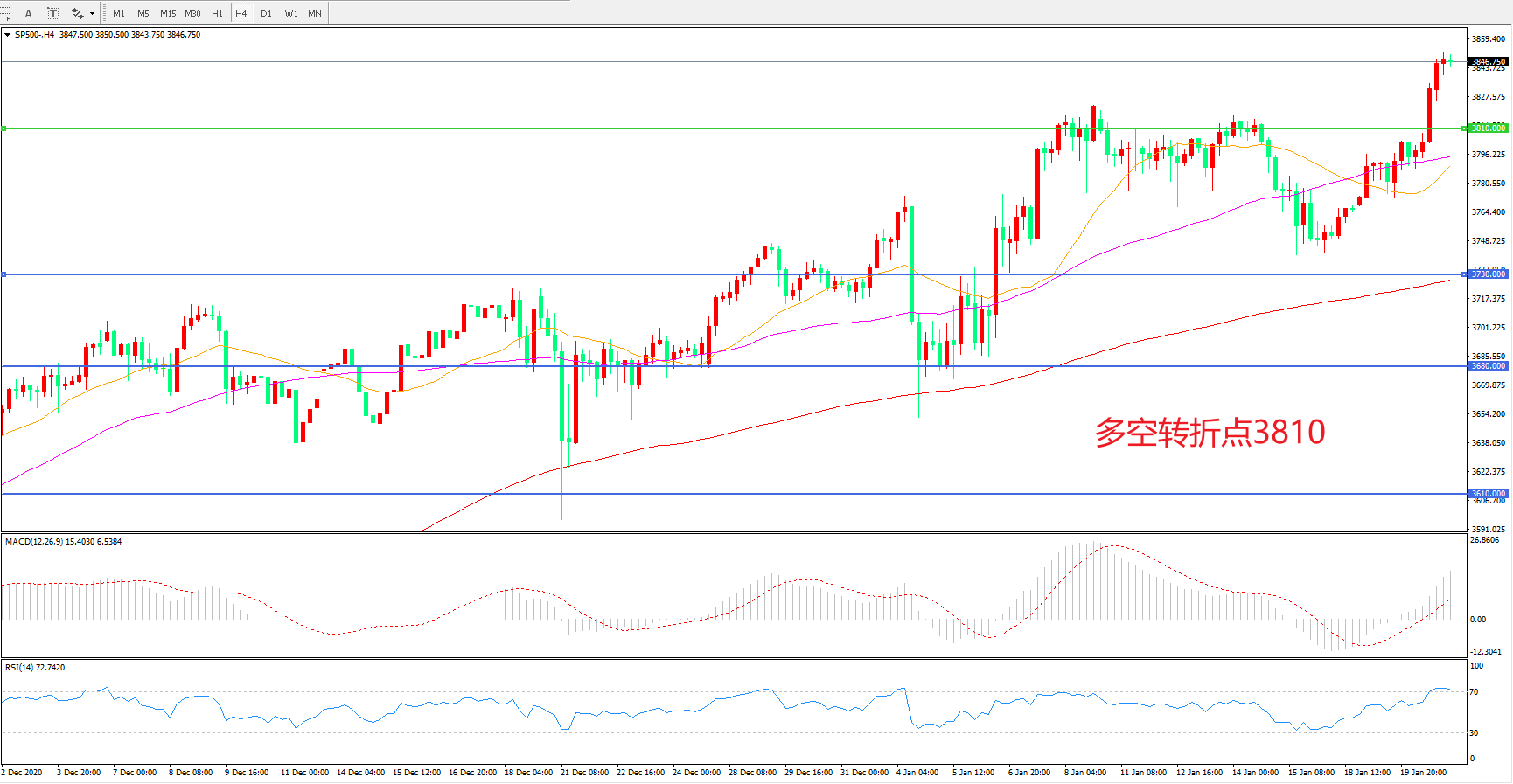 多空转折点:3810.00