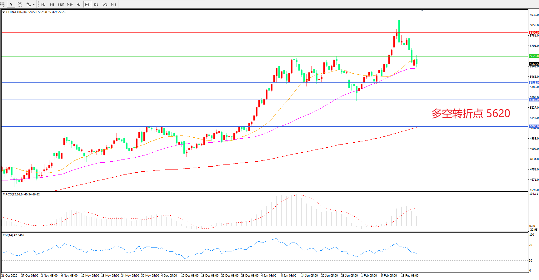 备选策略:在5620.00之上看涨,目标5800.00    5950.00