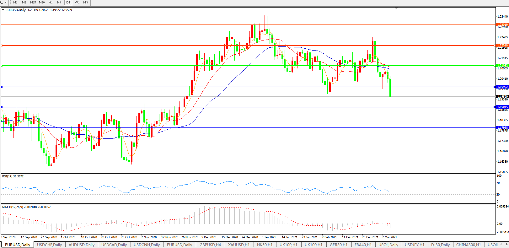 欧元兑美元EURUSD   日线图: