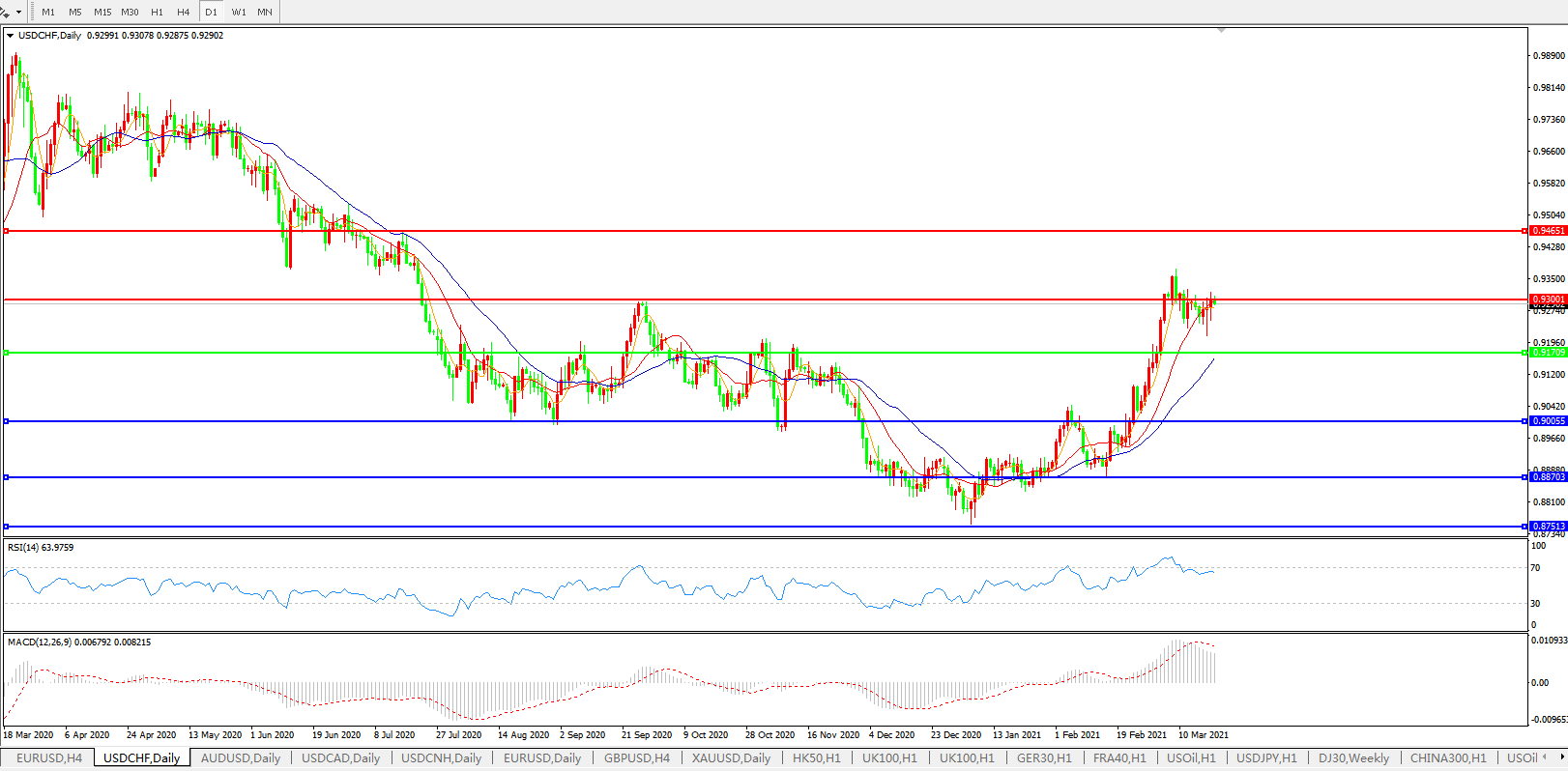 美元兑瑞郎USDCHF 日线图: