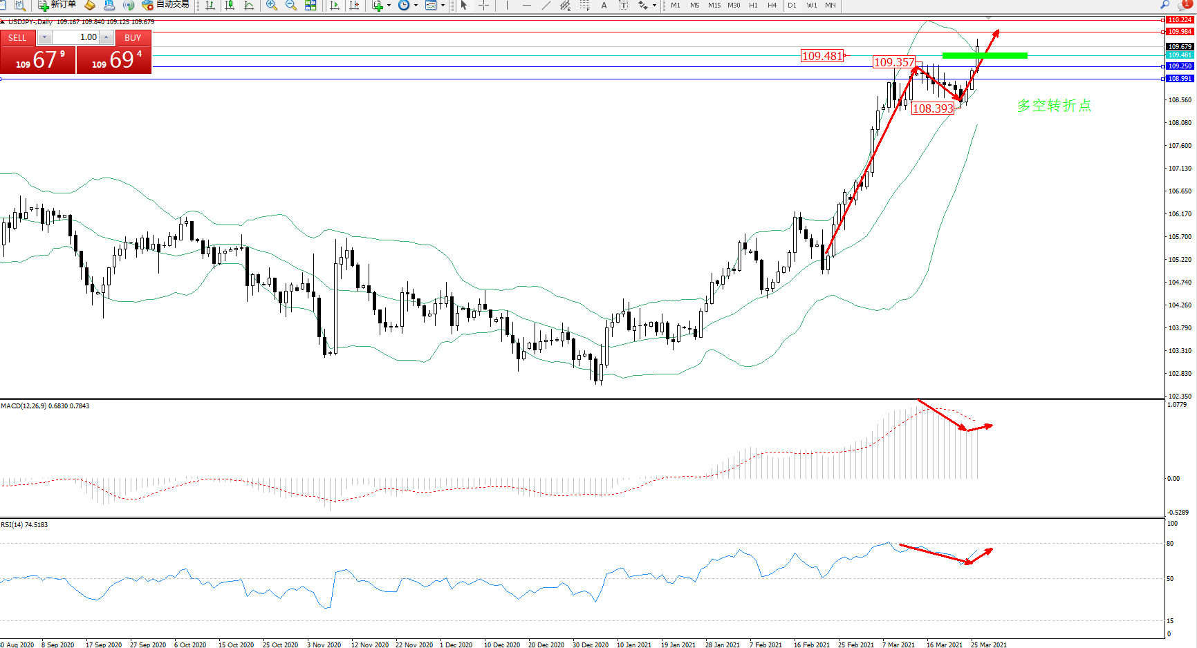 技术点评:多头动力延续布林带指标通道上轨附近持续震荡拉升,高位短暂维持整理平移至中轨附近节点后再度强势突破上轨附近节点,多头动力有进一步向上移动态势,布林带指标呈收口走势中,MACD指标处于多头区域高位弱势整理回撤开始平移,RSI指标处于多头区域缓慢回撤后开始反转上扬;