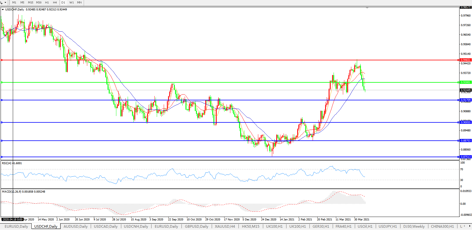 美元兑瑞郎USDCHF 日线图: