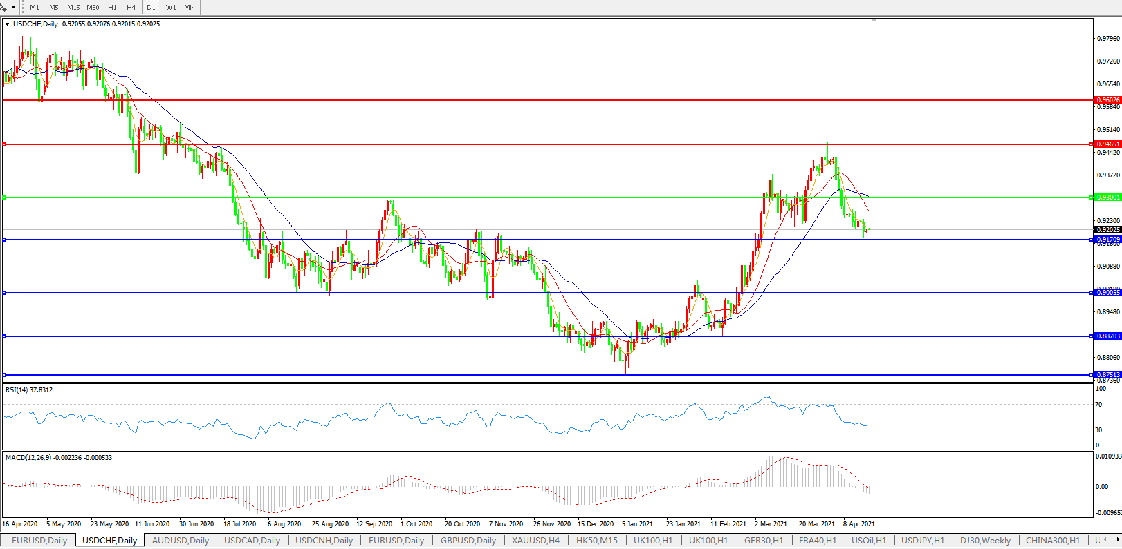 美元兑瑞郎USDCHF 日线图: