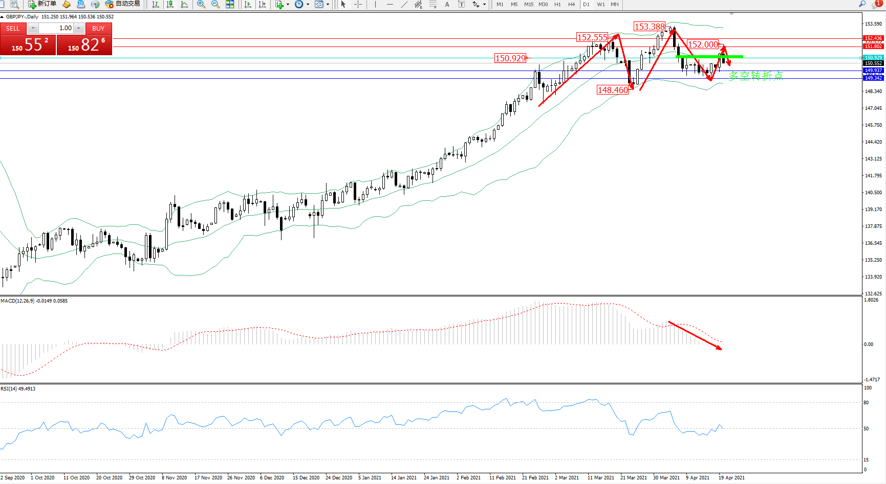 交易策略:150.929下方看跌,目标149.937、149.342
