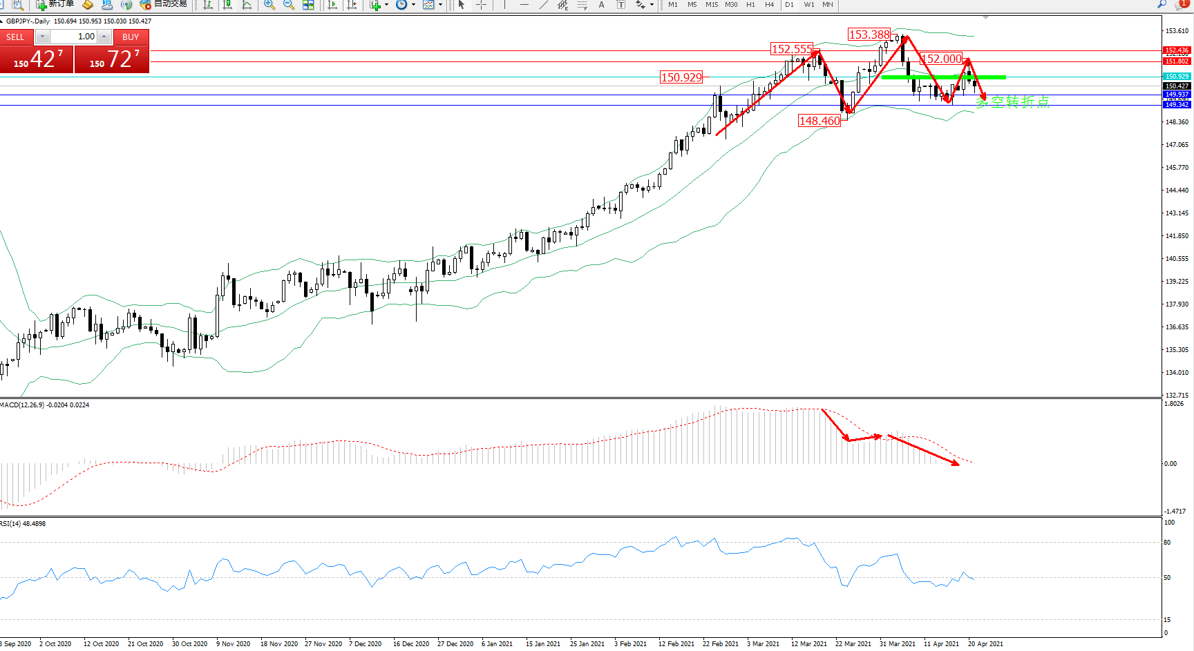 交易策略:150.929下方看跌,目标149.937、149.342