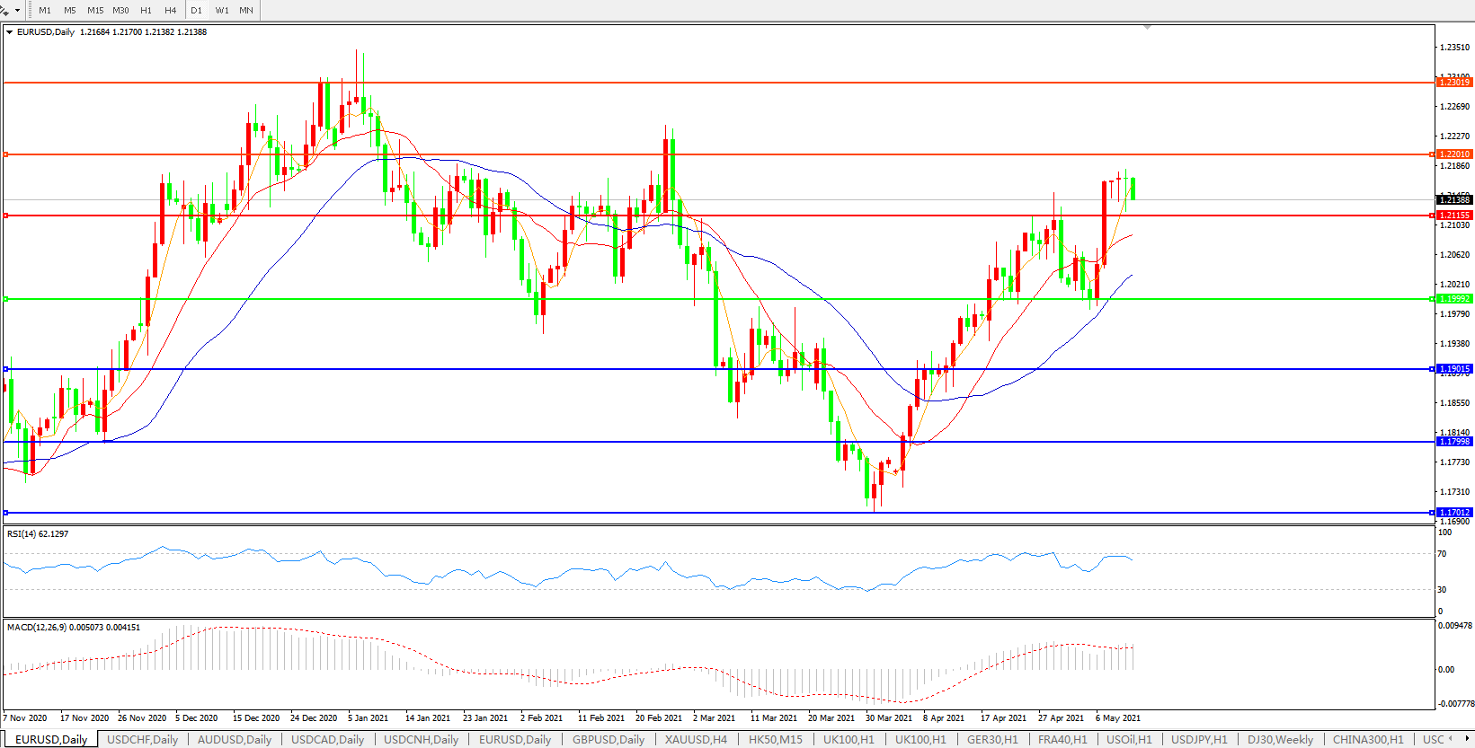 欧元兑美元EURUSD 日线图: