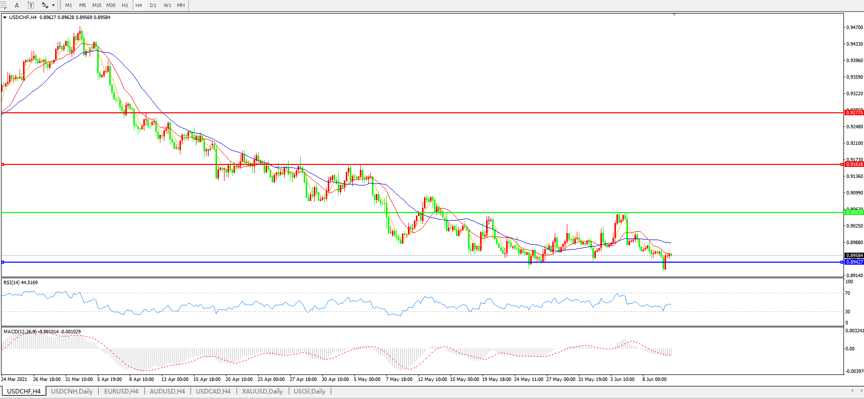美元兑瑞郎USDCHF    4小时图:
