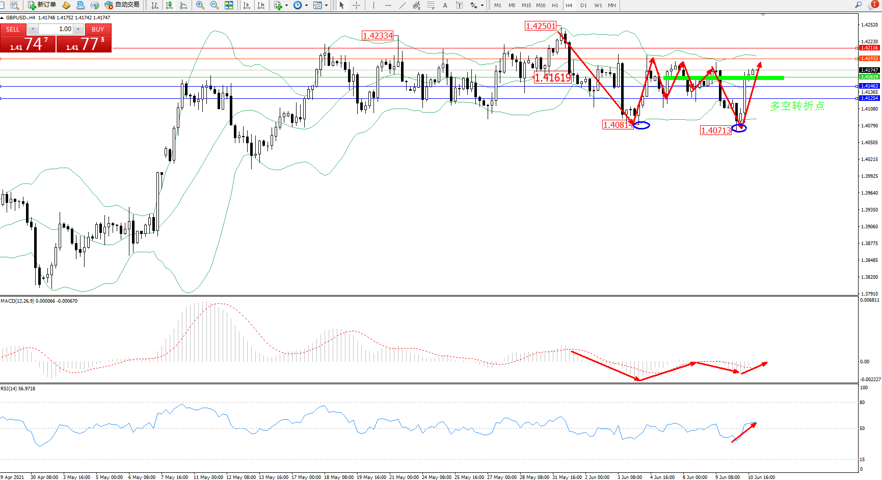 交易策略:1.41619上方看涨,目标1.41463、1.41254