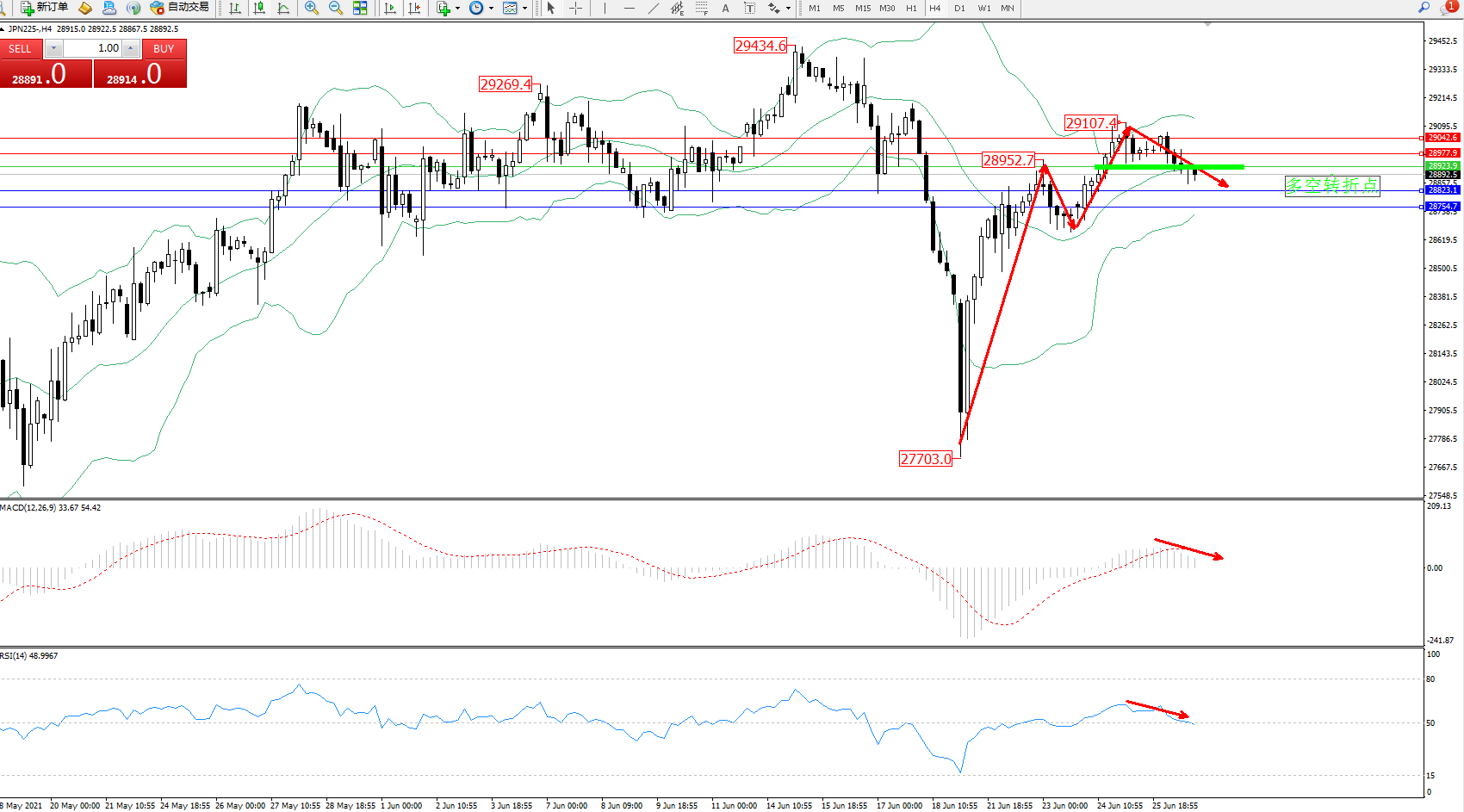 交易策略:28923.9下方看跌,目标28823、28754