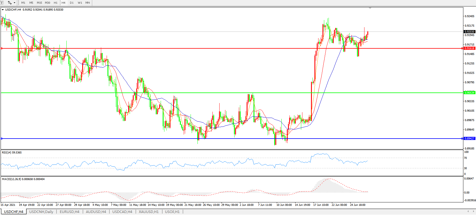 美元兑瑞郎USDCHF    4小时图: