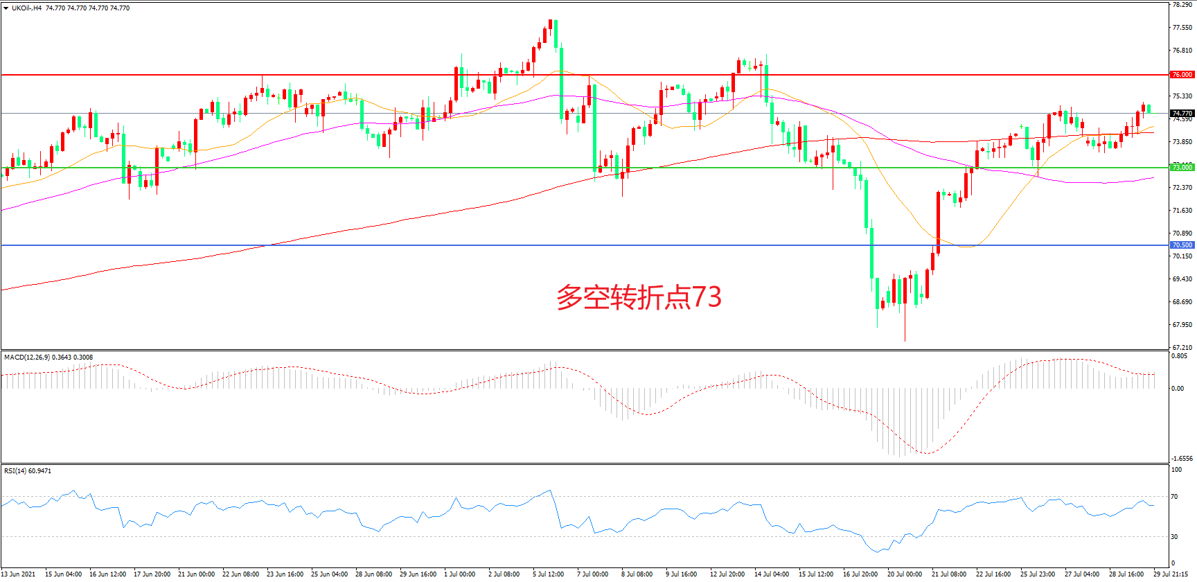 多空转折点:73.00