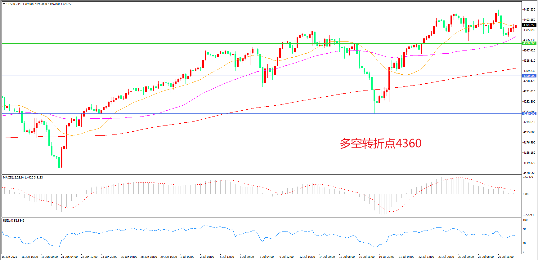 多空转折点:4360.00