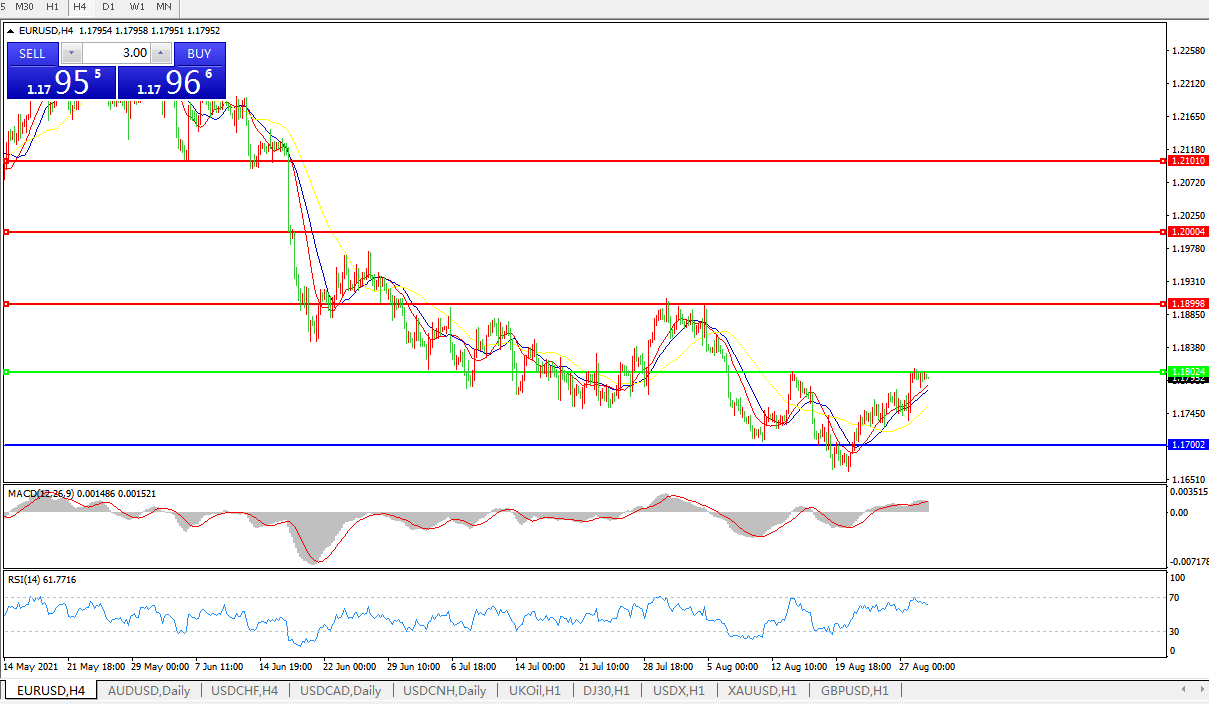 备选策略:1.1800下方看跌,目标1.1700、1.1600