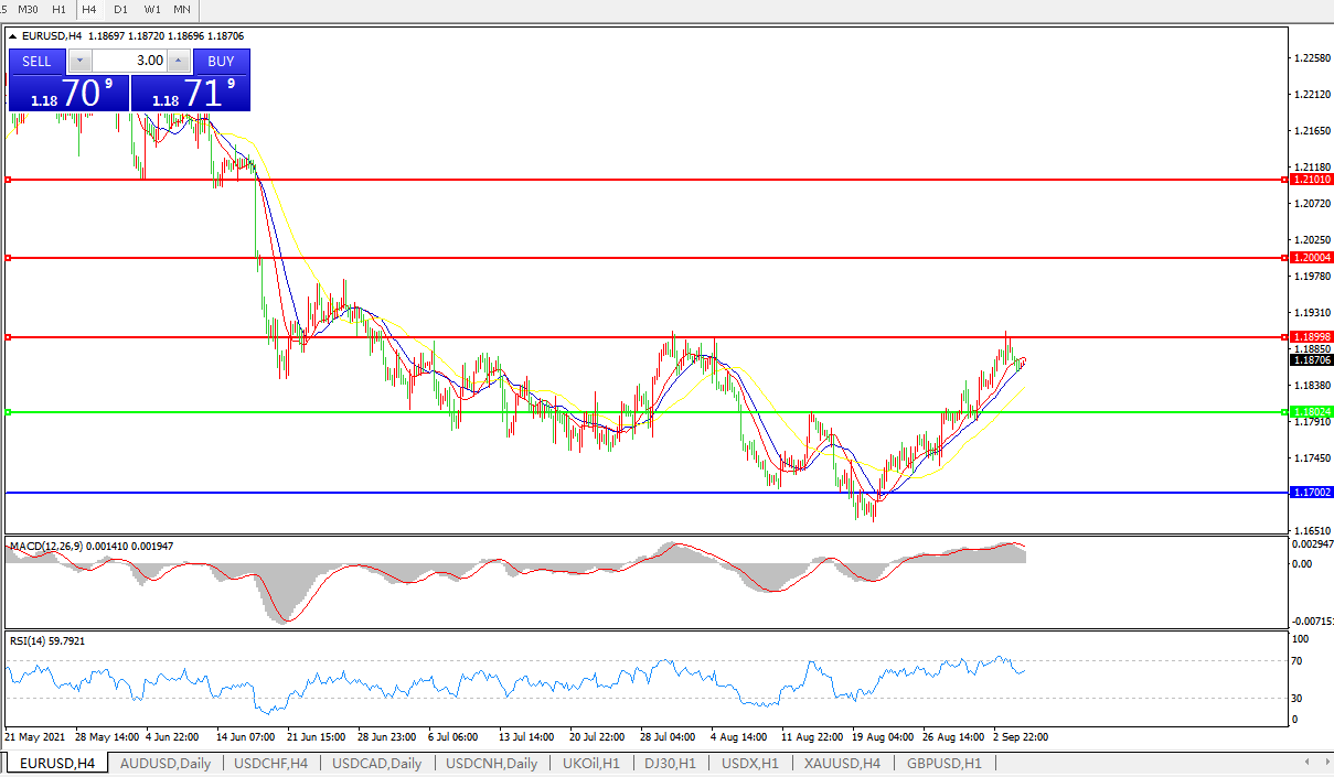 交易策略:1.1800上方看涨,目标1.1900、1.2000