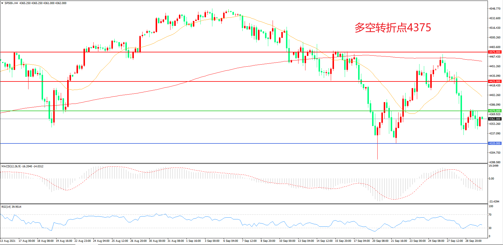 多空转折点:4375.00