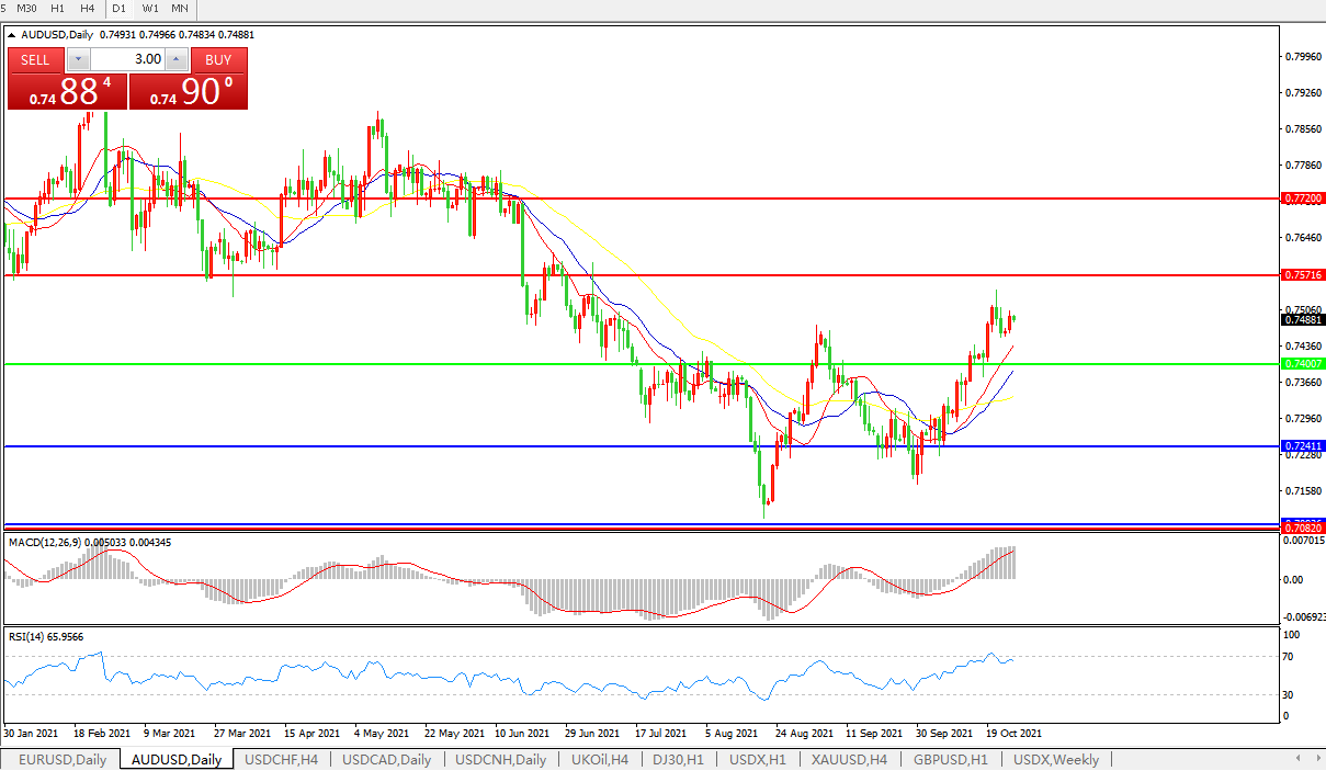 交易策略:0.7400上方看涨,目标0.7570、0.7720