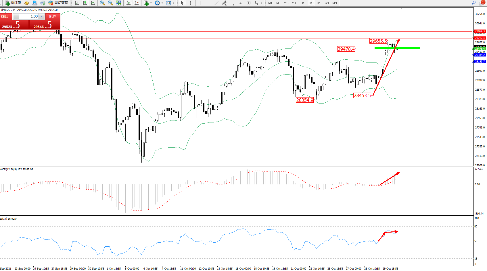 日经指数JPN225——4小时K线图显示: