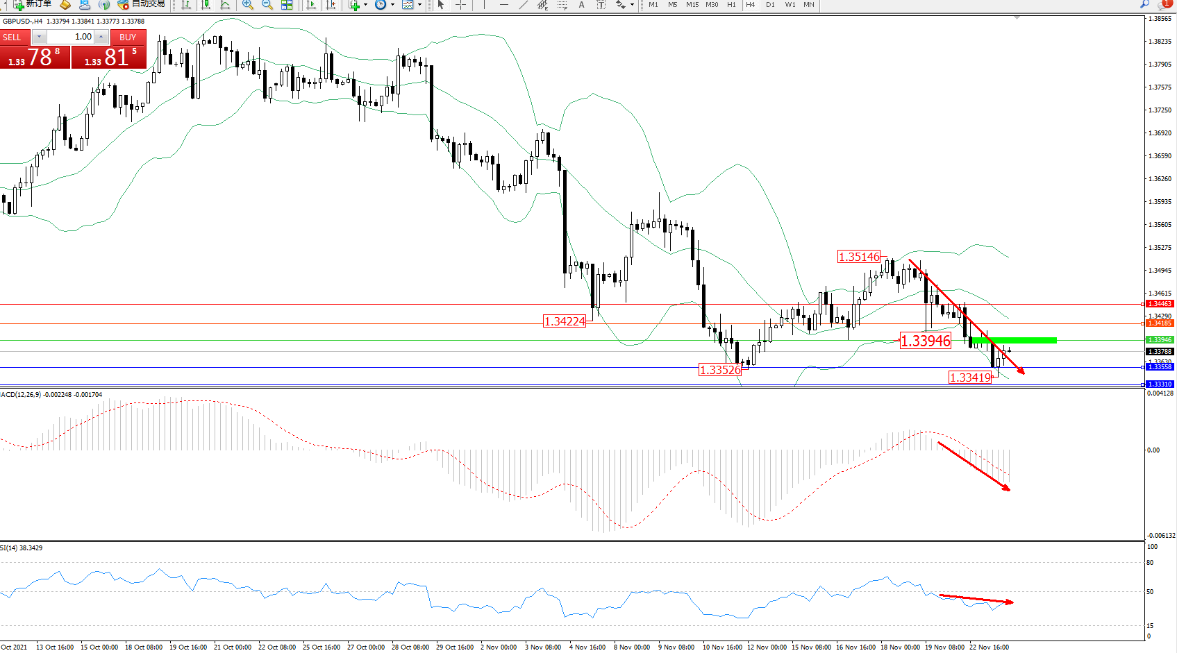 交易策略:1.33946下方看跌,目标1.33558、1.33310