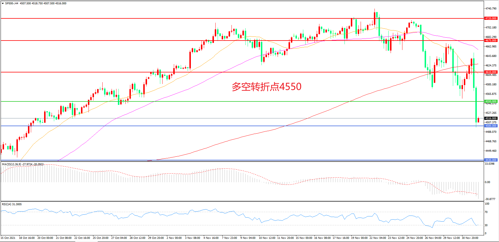 多空转折点:4550.00