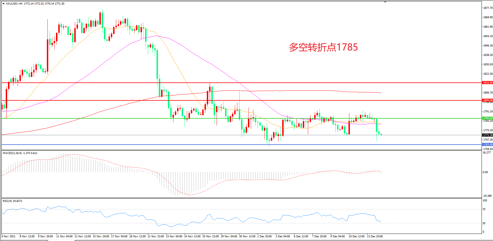 交易策略:在1785.00之下看跌,目标1763.00       1750.00