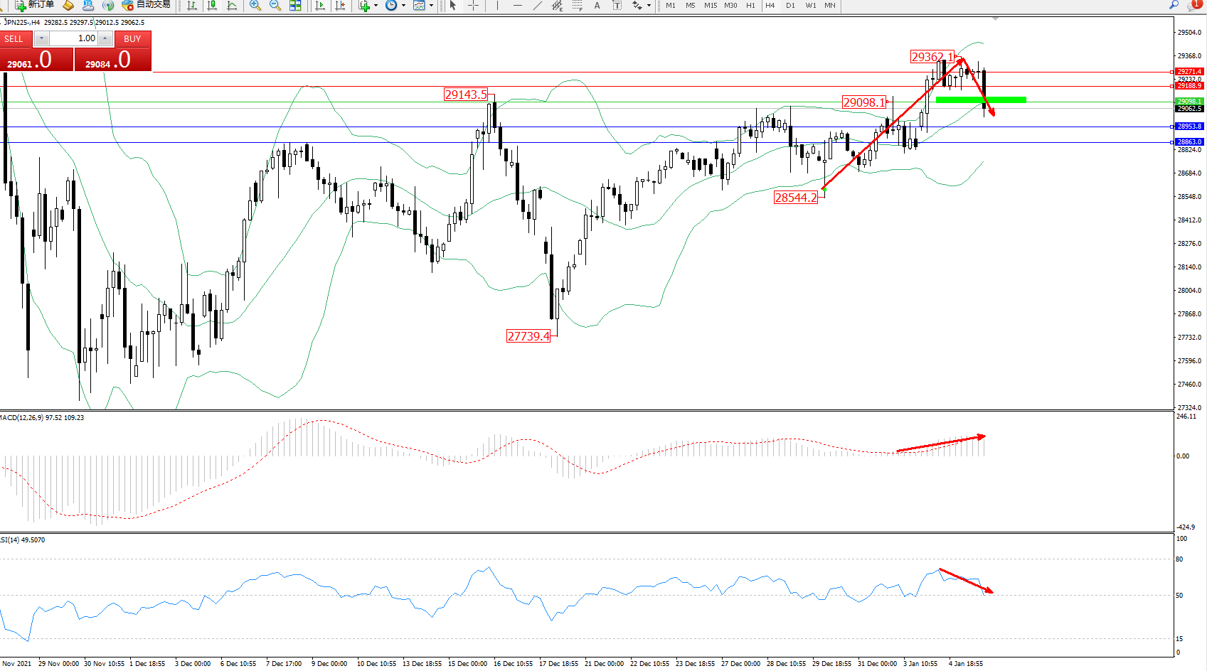 日经225指数1月5日(周三)收盘上涨50.71点,涨幅0.17%,报29352.50点。日本首相岸田文雄:计划在新冠疫情后实现“V”型经济复苏。日本将努力实现碳中和。薪资上涨对日本经济增长至关重要。旨在制定政策,使家庭收入翻倍。