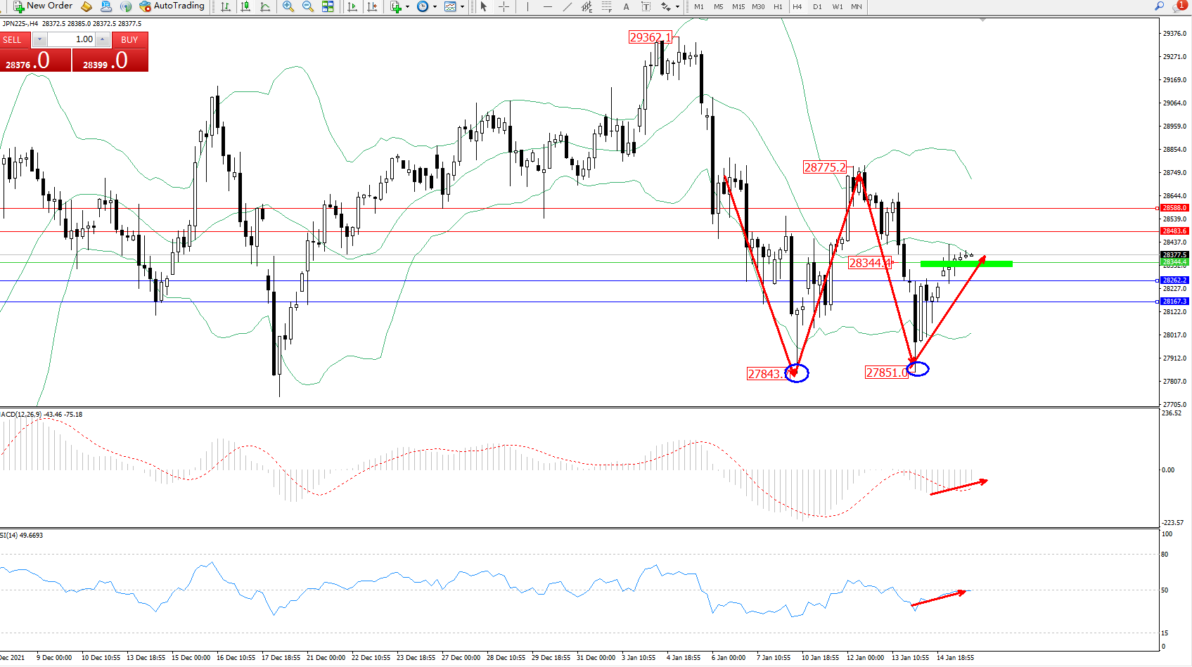 日经指数JPN225——4小时K线图显示: