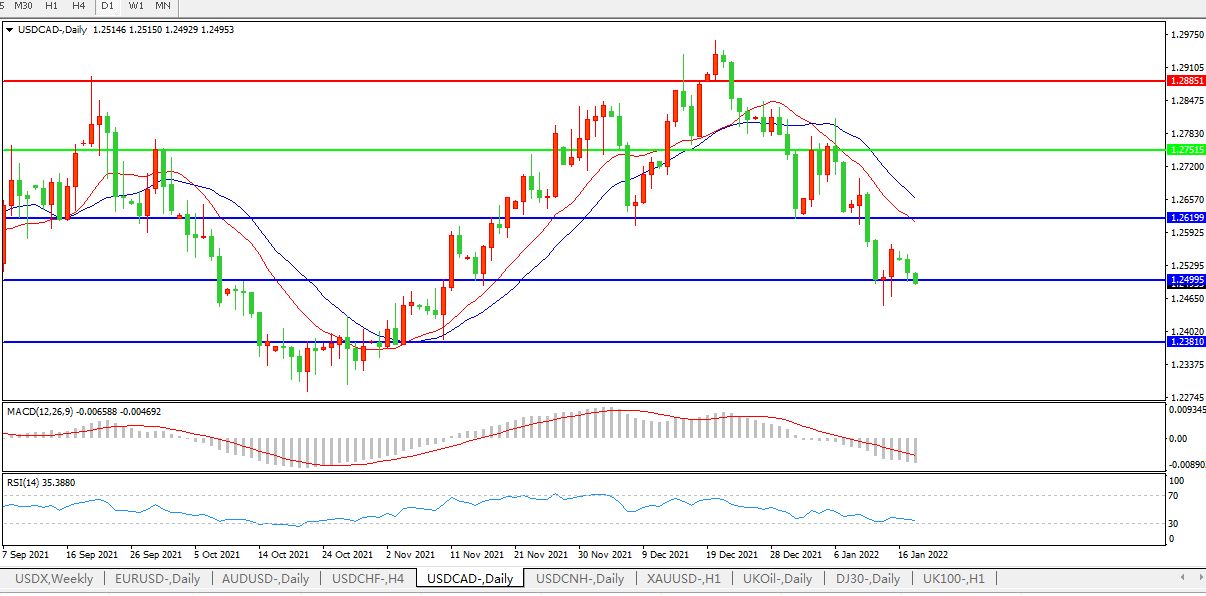 技术面简析:日图均线呈空头排列,汇价小幅反弹后快速回落,MACD运行于0轴下且量能0轴下持续放量,RSI小幅走弱,预计短期汇价大概率将在反弹后进一步下行。