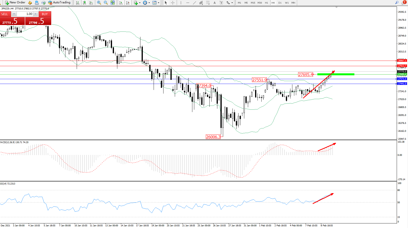 日经指数JPN225——4小时K线图显示: