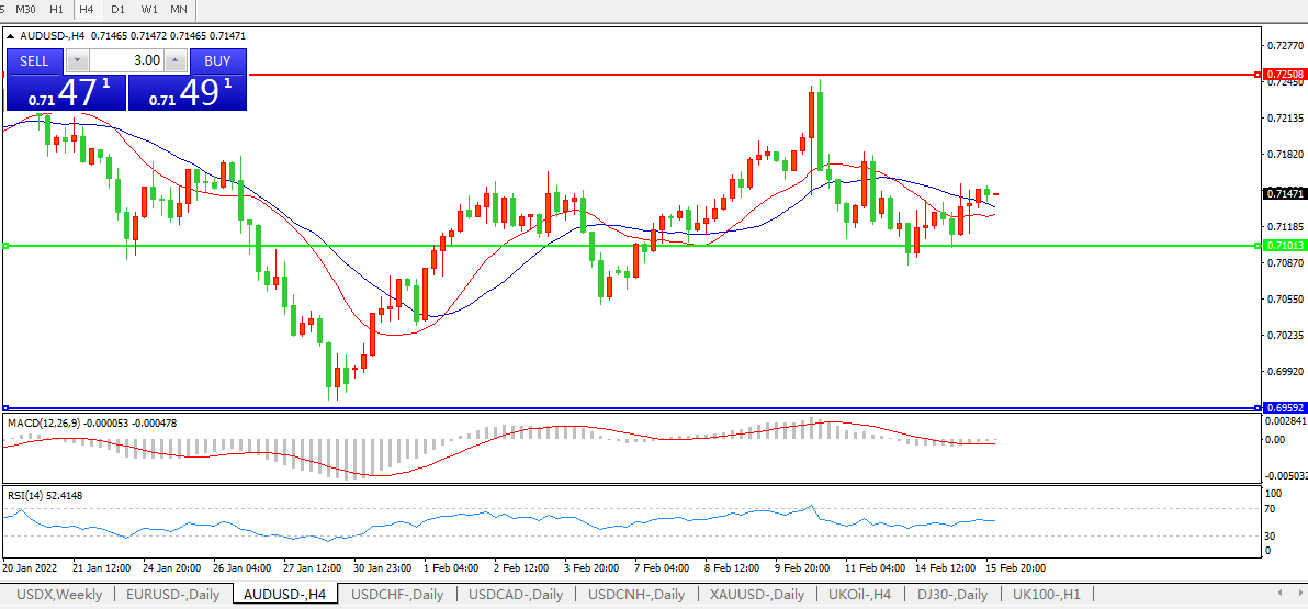 交易策略:0.7100上方看涨,目标0.7250、0.7400