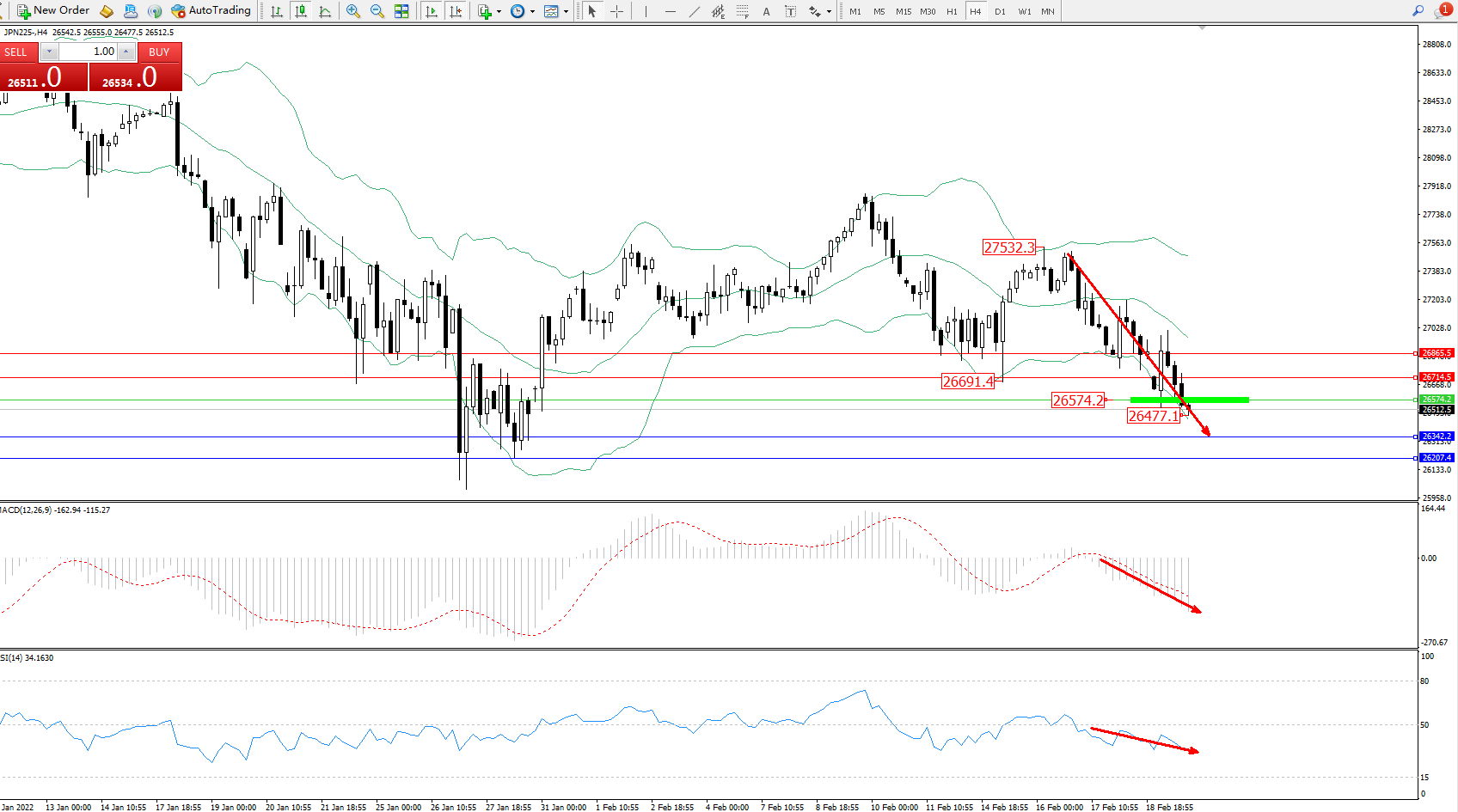 日经指数JPN225——4小时K线图显示: