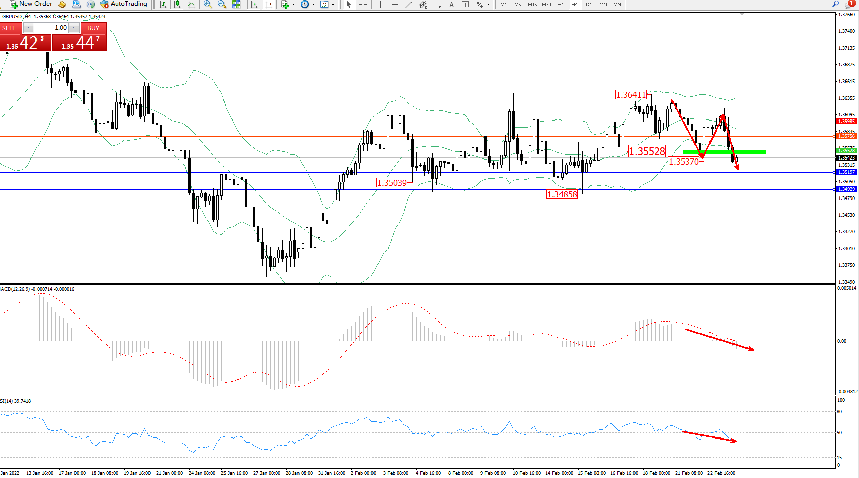交易策略:1.35528下方看跌,目标1.35197、1.34929