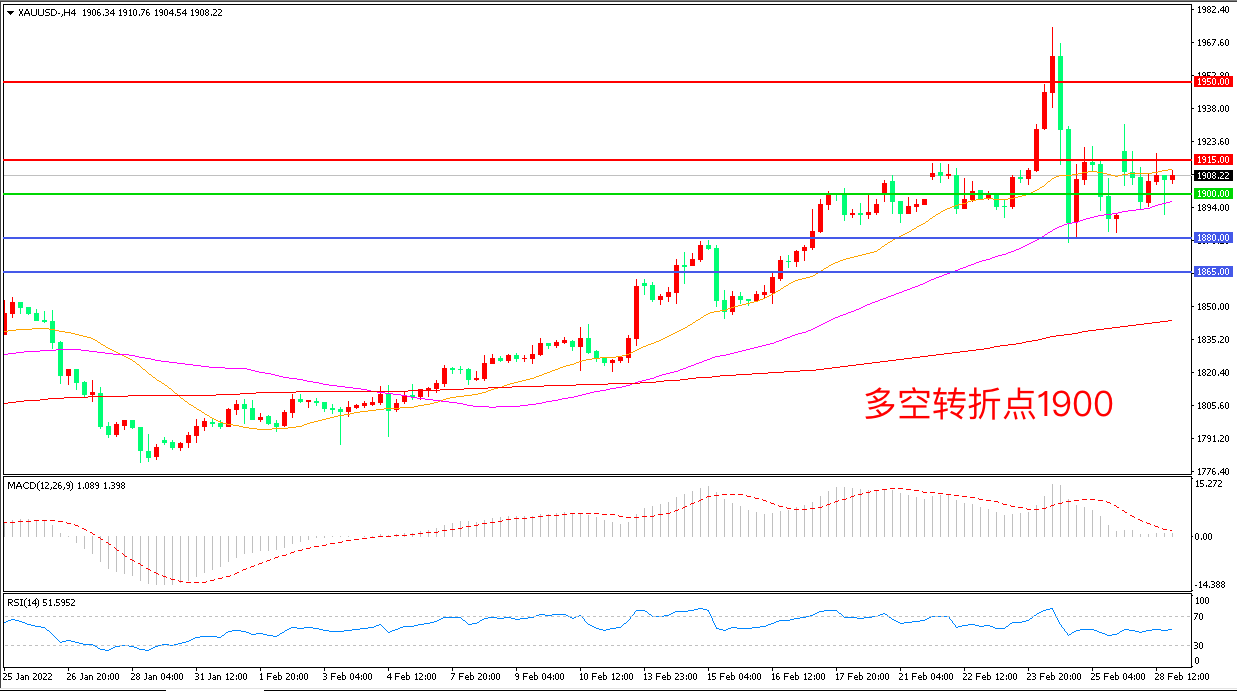 交易策略:在1900.00之上看涨,目标1915.00       1930.00