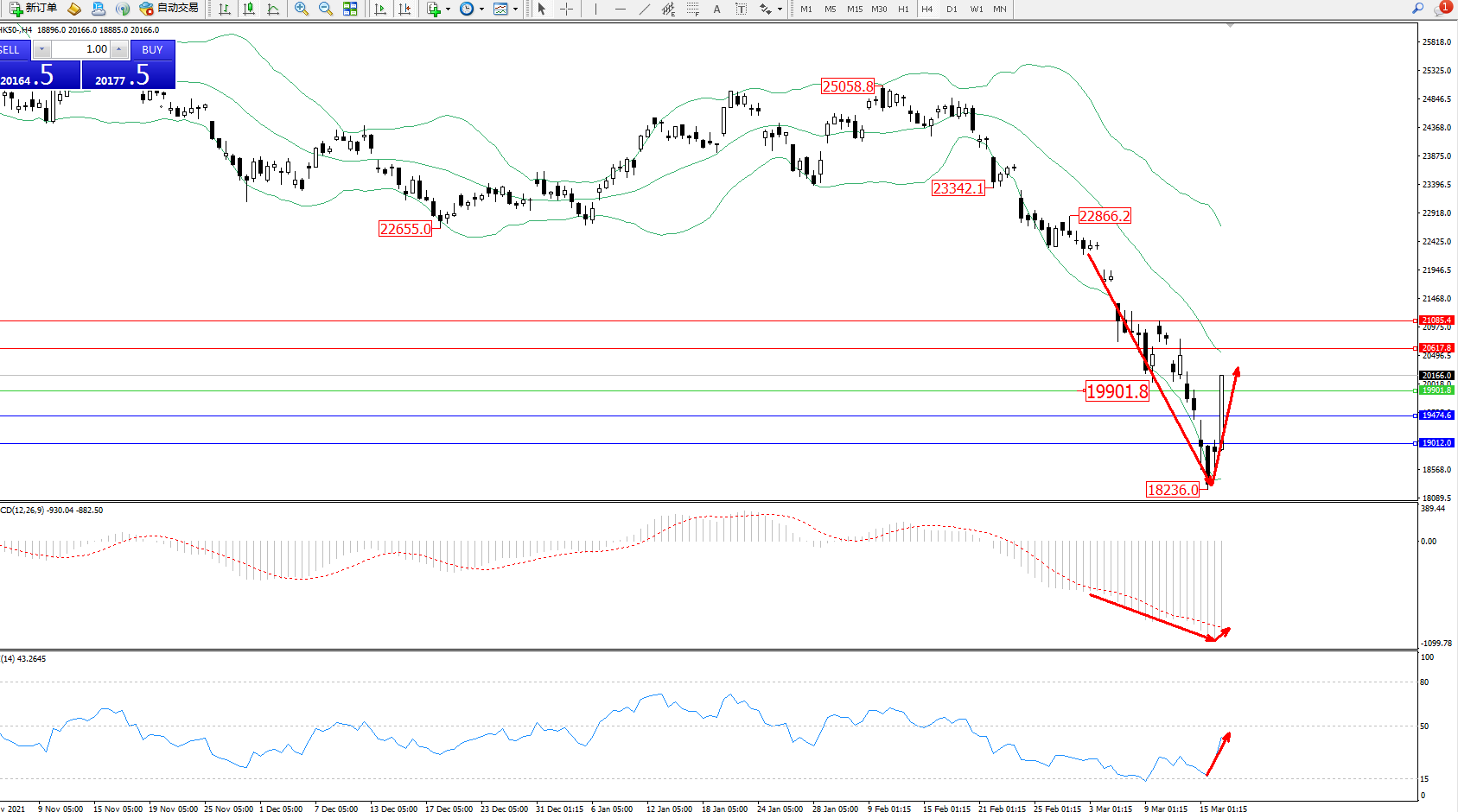 香港恒生指数3月16日(周三)收盘上涨1672.42点,涨幅9.08%,报20087.5点;午后金融委重磅发声,港A市场纷纷直线拉升。连续下跌的港股迎来报复性反弹行情,恒生科技指数飙涨22.2%,一举收复4200关口,且为历史最大单日涨幅;行业板块齐反弹,连续低迷的市场情绪得以恢复。盘面上,大型科技股引领大市上涨,京东飙升近37%,快手、美团均飙涨逾30%,阿里巴巴、腾讯、百度均大涨超20%;香港特区政府3月16日举行抗疫记者会,行政长官林郑月娥在回答中央广播电视总台记者提问时表示,国际环境复杂,各地金融市场受到冲击,香港作为国际金融中心虽不能置身事外,但香港的金融稳定及市场监督,都没有受到近日股市波动的影响。她强调香港金融、货币及市场监督体系仍然稳健。