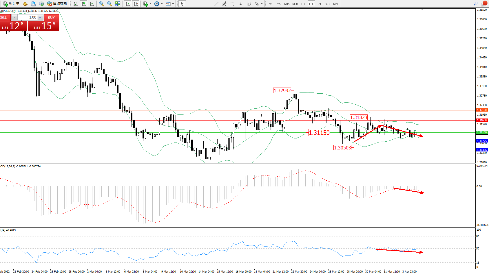 英镑美元GBPUSD ——4小时K线图显示: