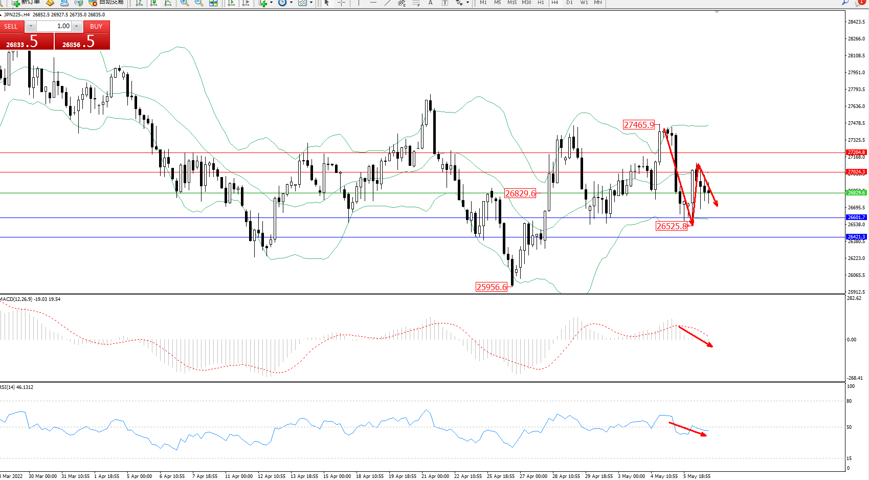 交易策略:26829下方看跌,目标26601、26421