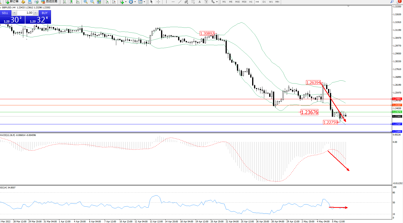 英镑美元GBPUSD ——4小时K线图显示: