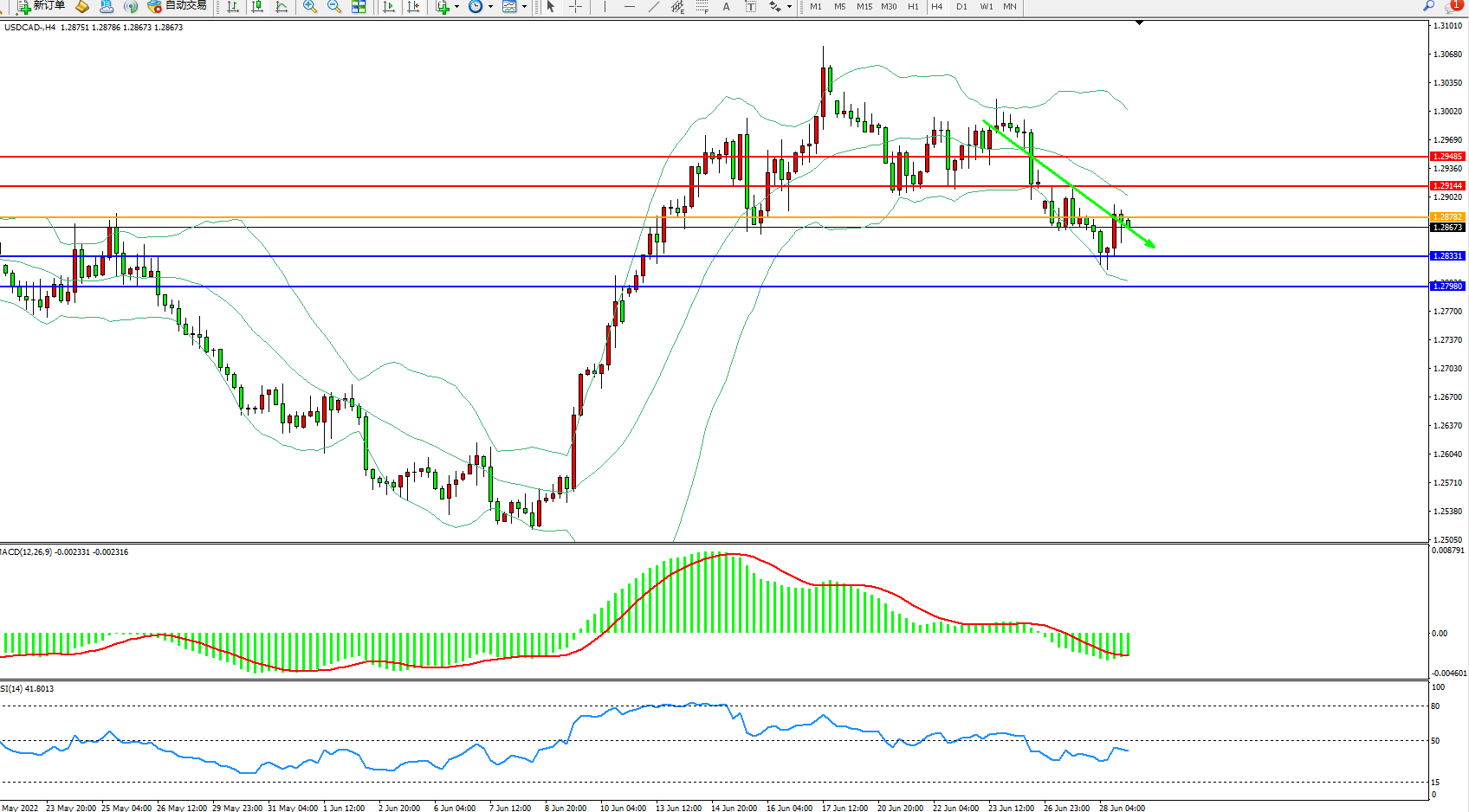 交易策略:1.28762下方看跌,目标1.28331、1.27980