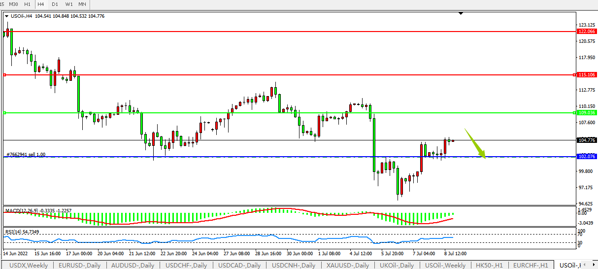 美国原油USOil 4小时图