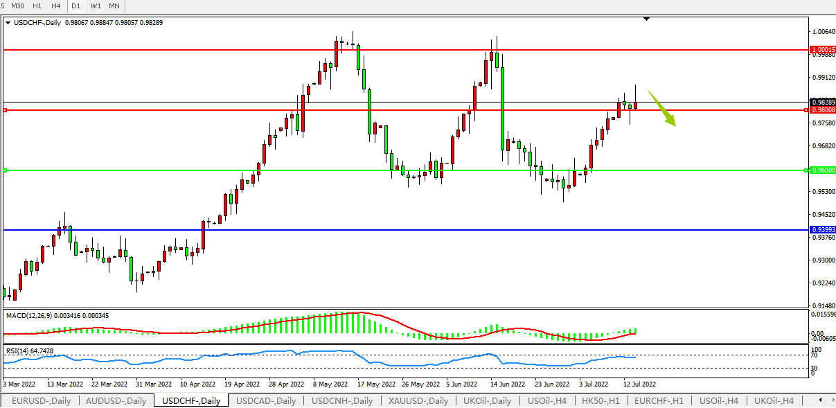 交易策略:0.9600上方看涨,目标0.9800,1.0000