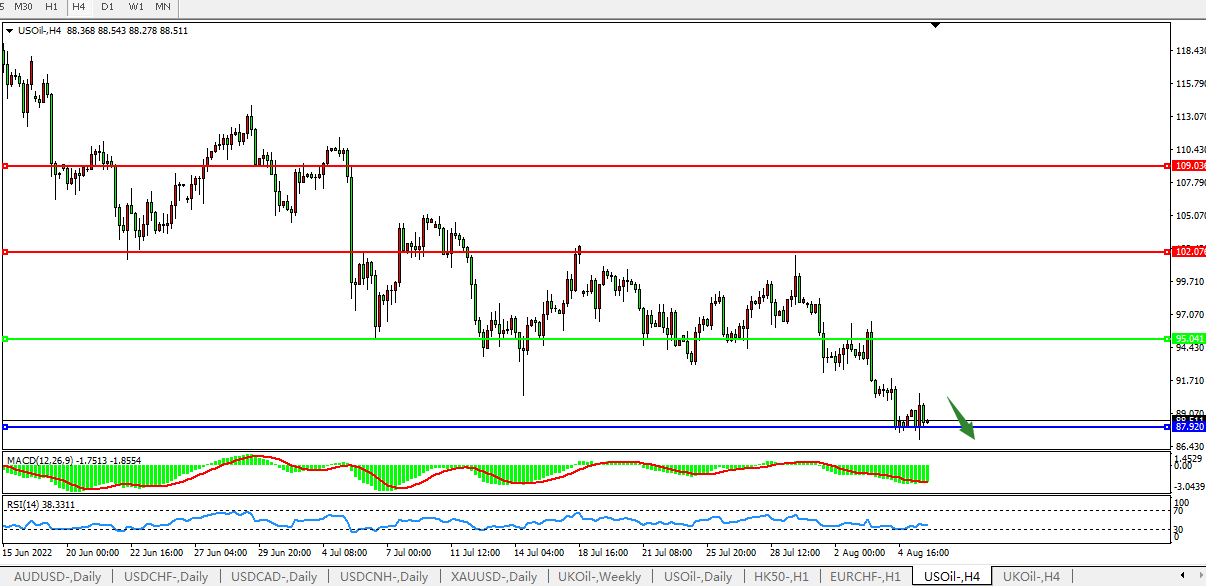美国原油USOil   4小时图