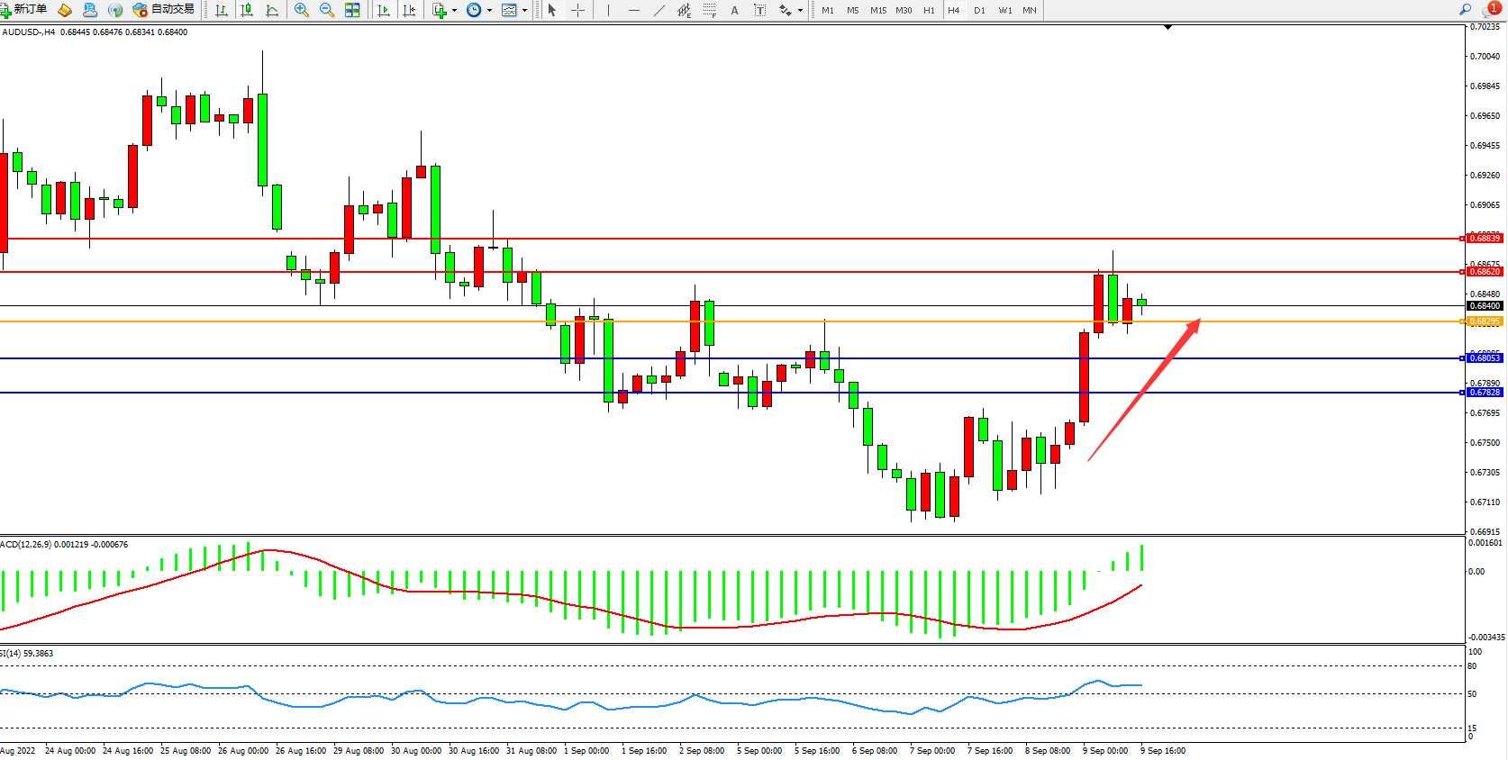 交易策略:0.68295上方看涨,目标0.68620、0.68839