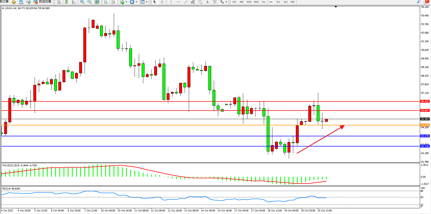 原油USOil——4小时K线图显示: