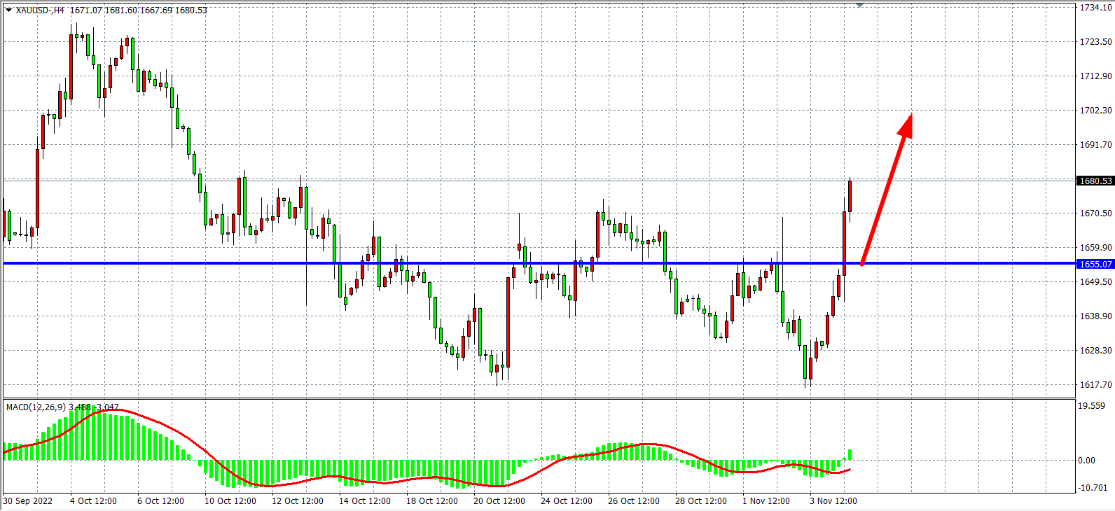 周五(11月4日)美国10月季调后非农就业人口录得增加26.1万人,黄金日内大涨40美元,涨幅达2%