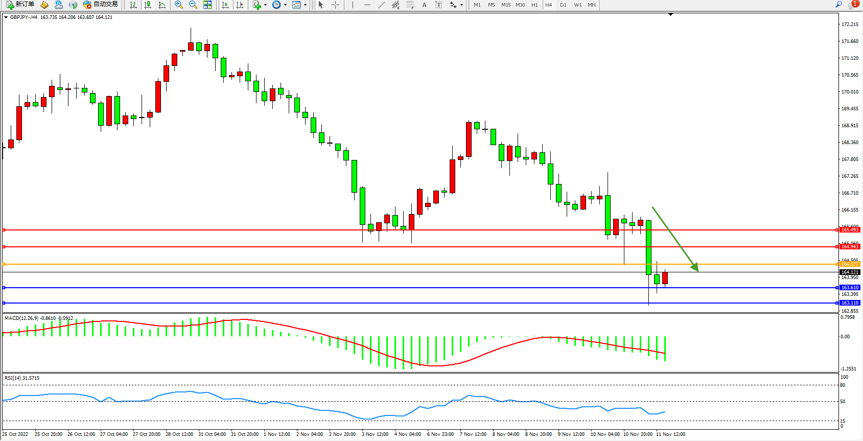 交易策略:164.377下方看跌,目标163.610、163.110