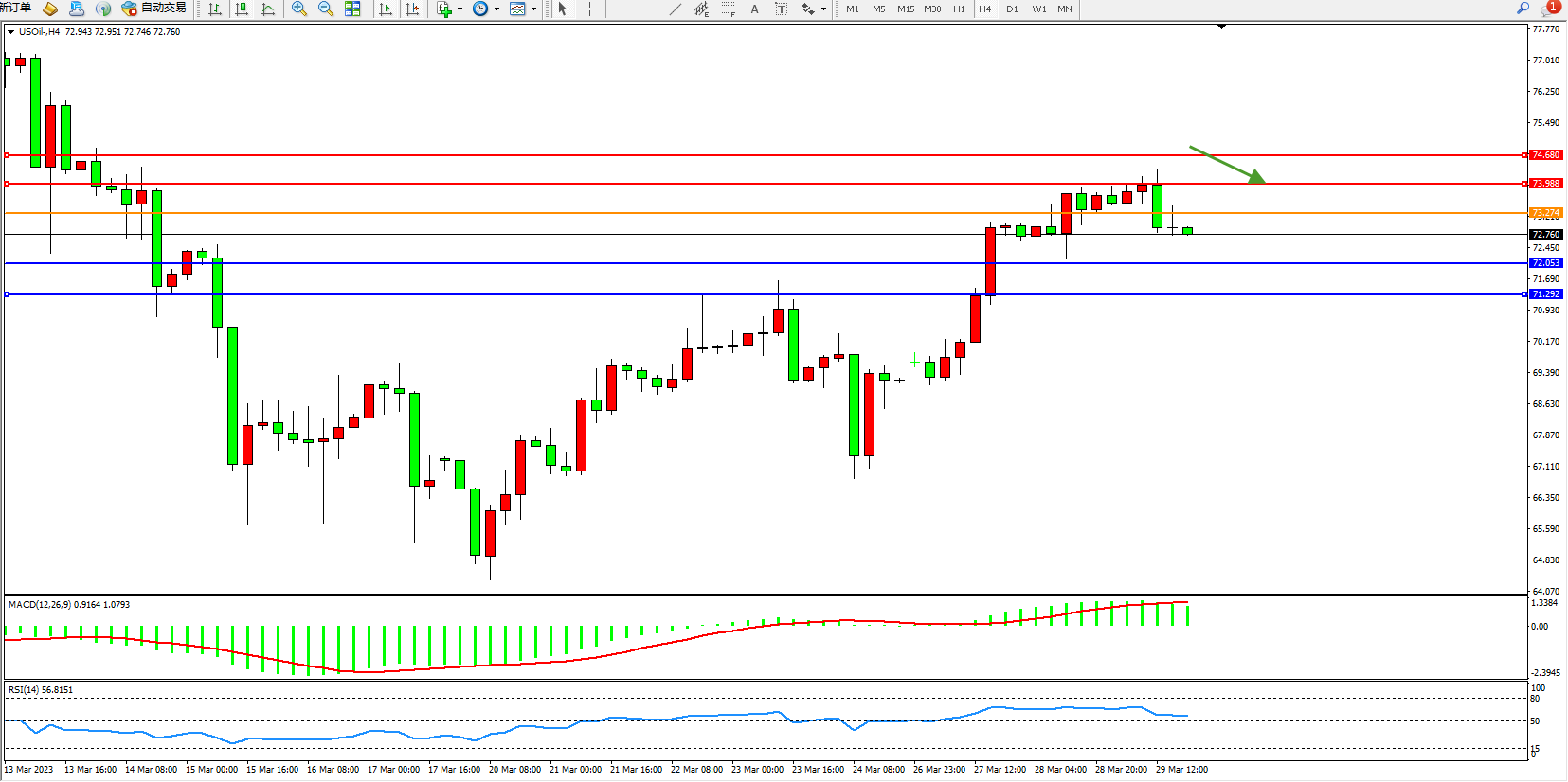 原油USOil——4小时K线图显示: