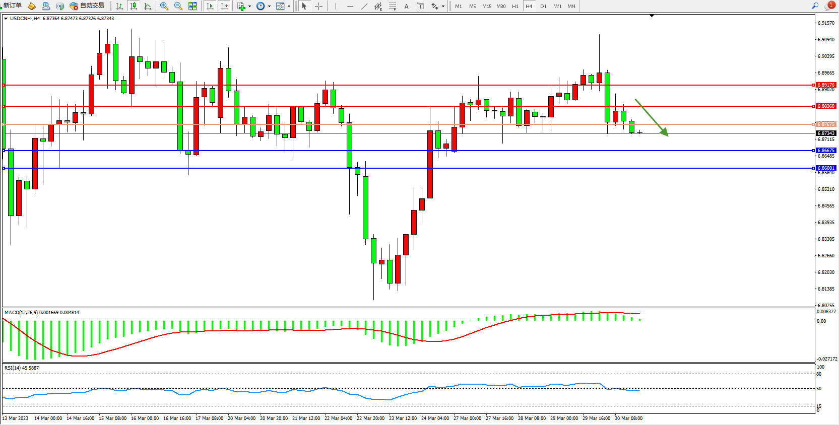备选策略:6.87675上方看涨,目标6.88368 6.89176