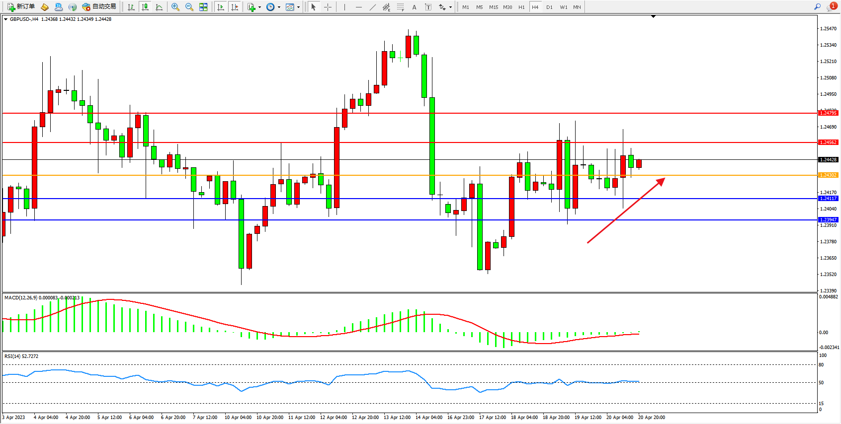 英镑美元GBPUSD ——4小时K线图显示: