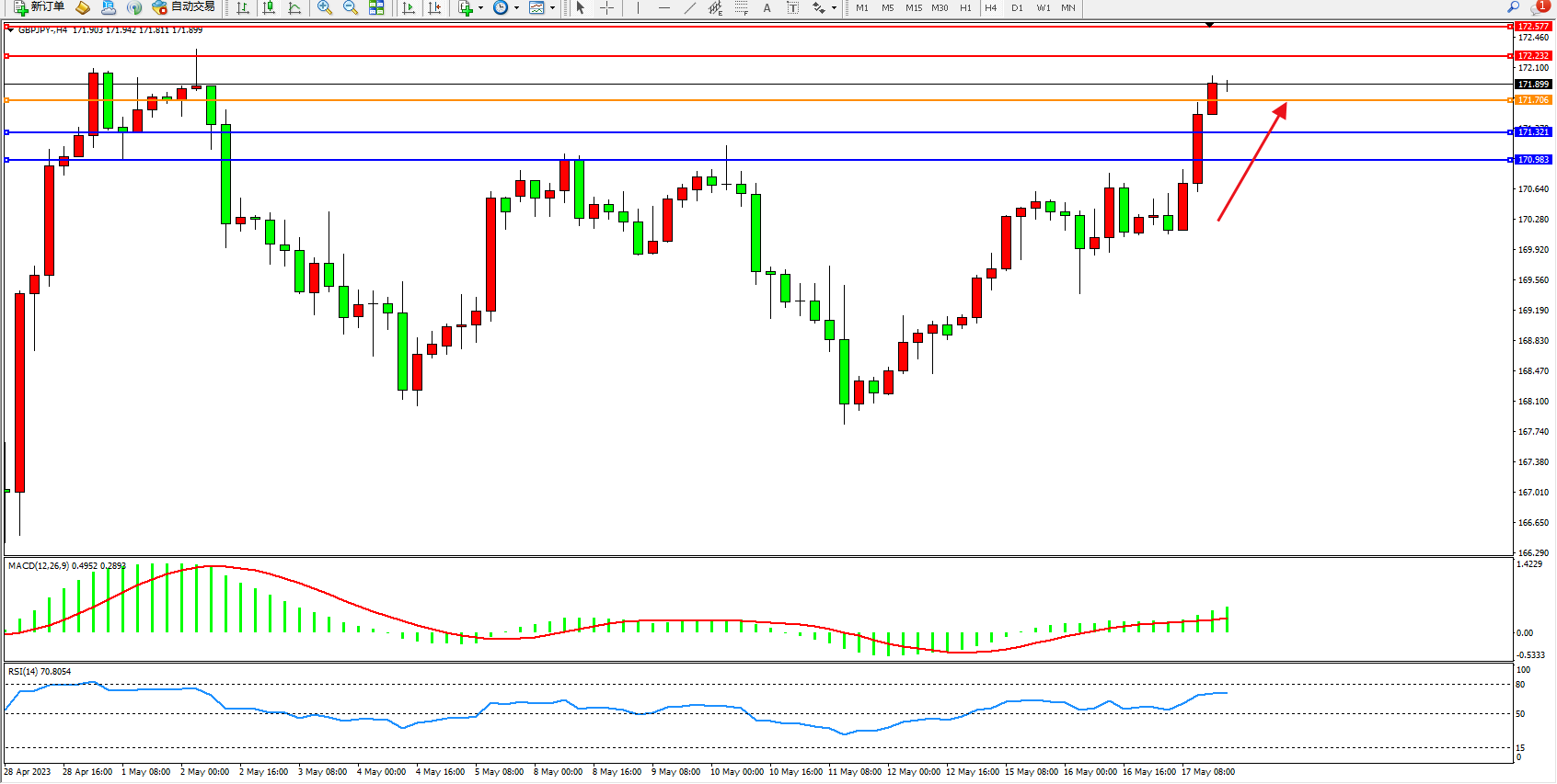 交易策略:171.706下方看跌,目标171.321 170.983